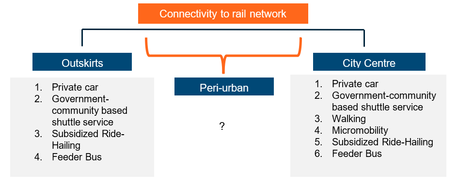 Figure 1 summarises how connectivity options to the rail network differ between city centres, peri-urban areas, and the outskirts in GKL.