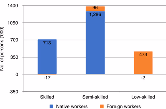 Foreign workers do not directly affect employment opportunities and wages of Malaysians because they occupy very different economic spaces from Malaysians, and therefore do not directly compete with Malaysians. Foreign workers primarily occupy unskilled jobs while Malaysians mainly take on semi-skilled and skilled occupations. The 2 million Malaysians employed between 2010 and 2017 were all in semi-skilled and skilled jobs. In contrast, for the 570 thousand foreign workers employed in the same period, 80 percent received unskilled jobs.