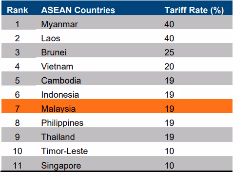 In a world where the US is unilaterally imposing higher tariffs on all its trade partners, what matters for commerce is relative tariff rates as opposed to absolute tariff rates. If Malaysia was tariffed at 19% while most of its competitors were tariffed at 25%then Malaysia exports would enjoy a relative price advantage, other things being equal. There may even be trade diversion and investment diversion towards Malaysia as a result. If Malaysia had a higher tariff than its competitors then its goods would be relatively more expensive to US customers. This would make it less attractive and could result in trade diversion away from Malaysia and corresponding disinvestment.