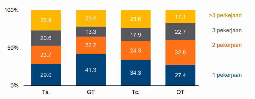 Dalam kalangan mereka yang mengalami lebih daripada tiga perubahan pekerjaan, hampir separuh (49%) kini berada dalam peranan yang selaras dengan latar belakang akademik dan set kemahiran mereka, berbanding 44.2% bagi mereka yang hanya mengalami satu perubahan pekerjaan. Walau bagaimanapun, kumpulan ini juga menunjukkan perkadaran lebih tinggi (17.8%) yang melaporkan ketidakpadanan sepenuhnya, yang menandakan bahawa walaupun mobiliti memudahkan kesesuaian yang lebih baik bagi sesetengah individu, ia juga boleh membawa individu lain ke peranan yang tidak berkaitan. Ini mungkin disebabkan oleh kekangan luaran seperti pasaran buruh yang tepu atau keterbatasan geografi.